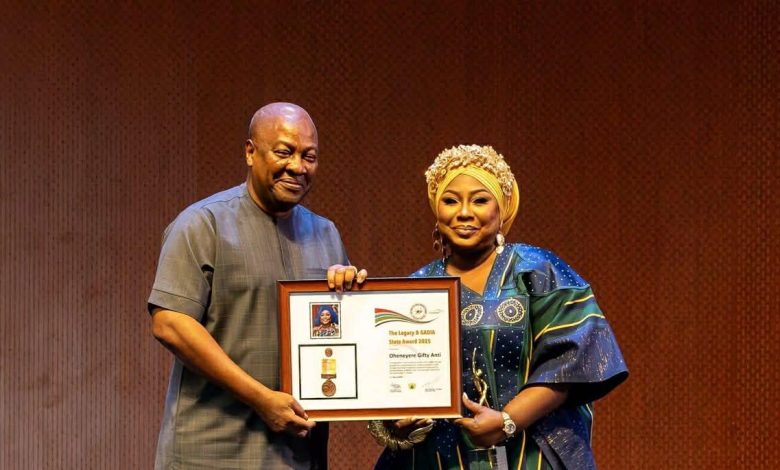 Ghanaian broadcaster and women’s advocate Oheneyere Gifty Anti has been honoured with the prestigious Head of State Legacy and GADIA Award on March 31, 2026, presented personally by President John Dramani Mahama.